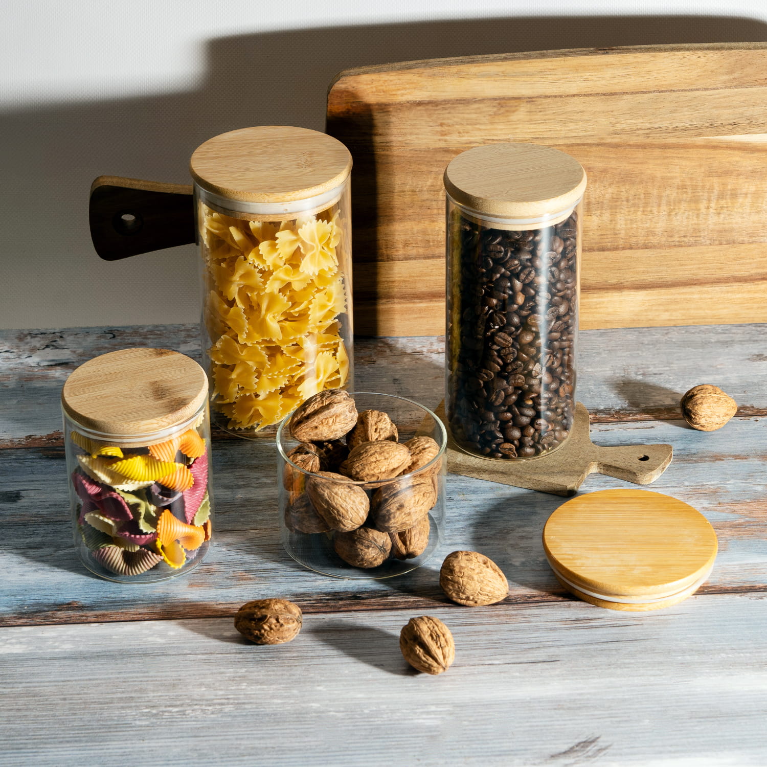 Vneste do své kuchyně harmonii a funkčnost díky nádobám, které spojují moderní minimalismus s ekologickou elegancí. Skleněné nádoby ve 4 různých objemech s přírodním bambusovým víkem nejsou jen stylovým doplňkem na kuchyňské lince, ale především praktickým nástrojem pro uchovávání vašich oblíbených produktů. Jejich estetický tvar a pevné zpracování z nich dělají nepostradatelný prvek každodenní organizace.