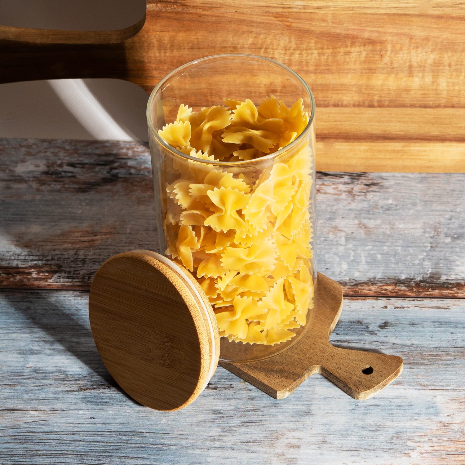 - Snadné čištění – skleněnou část lze mýt v myčce, bambusové víko stačí otřít vlhkým hadříkem.