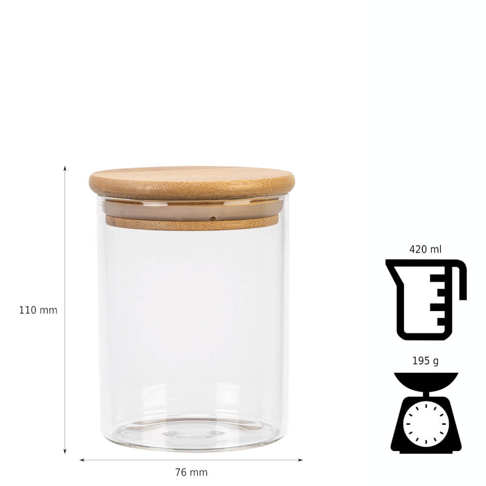Skleněná nádoba 420 ml na uchovávání potravin s dřevěným víčkem