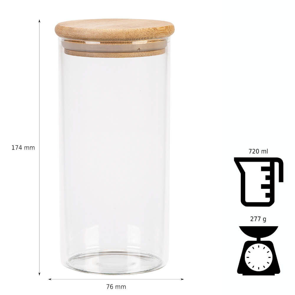 SKLENĚNÁ NÁDOBA – 720 ml – sklenice s dřevěným víčkem a těsněním